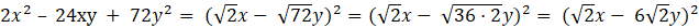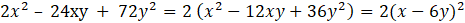 Zaznacz dwa wyrażenia, które są równoważne wyrażeniu 2x2 – 24xy + 72y2.