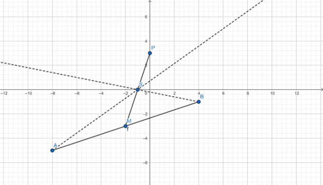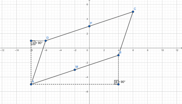 Wiesz, że P jest środkiem odcinka CD. Wyznacz środek odcinka AB i oznacz go jako M.
