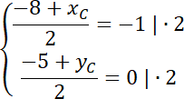 S jest środkiem dla przekątnej CA oraz BD. Zatem punkt C: