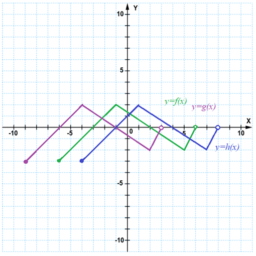 Aby narysować wykresy funkcji g i h, musisz przesunąć funkcję f o odpowiednie wektory. Miejsca zerowe odczytaj z wykresu.