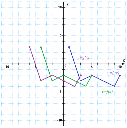 Aby narysować wykresy funkcji g i h, musisz przesunąć funkcję f o odpowiednie wektory. Wartości funkcji h, potrzebne do obliczenia wyrażenia