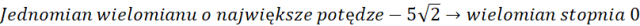Musisz wypisać wartości poszczególnych współczynników podanego wielomianu oraz na podstawie największej potęgi jednomianu określić stopień wielomianu.
