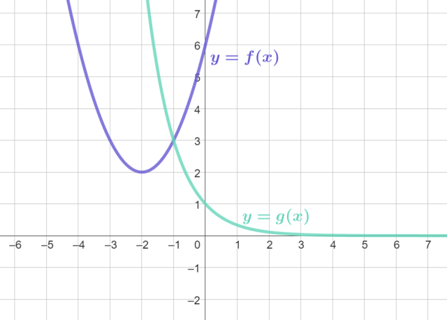 Odczytaj rozwiązanie równania, czyli argumenty, dla których wykresy obu funkcji przecinają się.