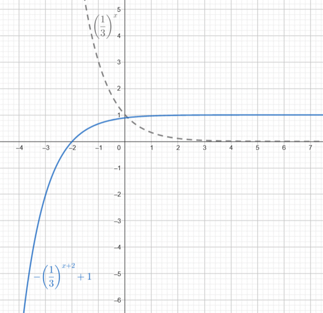przekształcono przez symetrię osiową względem osi OX. Następnie otrzymany wykres przesunięto równolegle o wektor