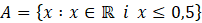 Najpierw narysuj na osi liczbowej wskazany przedział – wszystkie nie większe od 0,5, a następnie podaj przykład liczby wymiernej i niewymiernej, które należą do tego zbioru.