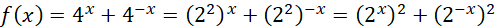 Funkcja g jest sumą wyrażeń 2x oraz 2-x. Przyjmują one tylko wartości dodatnie (co wynika z własności funkcji wykładniczej). Zatem do zbioru wartości funkcji g też będą należały tylko liczby dodatnie.