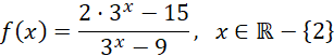 Zdefiniuj zmienną t równą wyrażeniu 3x. Zauważ, że zmienna t może przyjmować tylko wartości dodatnie z odrzuceniem 9, co wynika ze zbioru wartości funkcji y = 3x oraz faktu, że funkcja f nie jest zdefiniowana dla x = 2 (32 = 9).