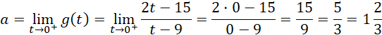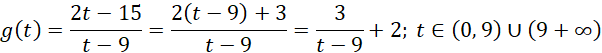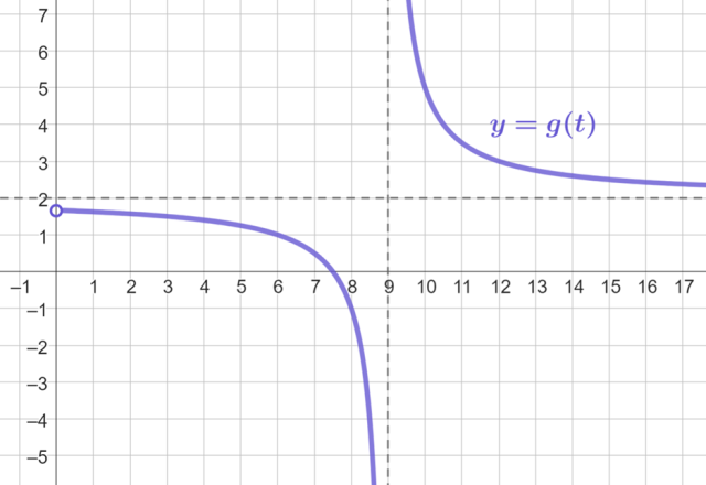 Asymptotą pionową wykresu tej funkcji jest prosta o równaniu t = 9, zatem funkcja g jest malejąca w rozpatrywanych przedziałach: (0, 9) oraz (9, +∞).