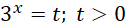 Zdefiniuj zmienną t równą wyrażeniu 3x. Zauważ, że zmienna t może przyjmować tylko wartości dodatnie, co wynika ze zbioru wartości funkcji y = 3x.