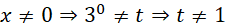 Zdefiniuj zmienną t równą wyrażeniu 3x. Zauważ, że zmienna t może przyjmować tylko wartości dodatnie z odrzuceniem 1, co wynika ze zbioru wartości funkcji y = 3x oraz faktu, że funkcja f nie jest zdefiniowana dla x = 0 (30 = 1).