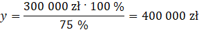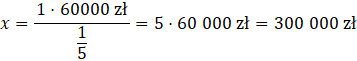 Najpierw obliczasz, ile warta była część akcji pana Stanisława. Liczbą 1 oznaczono całość. Dzięki temu będziesz mógł wyznaczyć wartość wszystkich akcji całej firmy.
