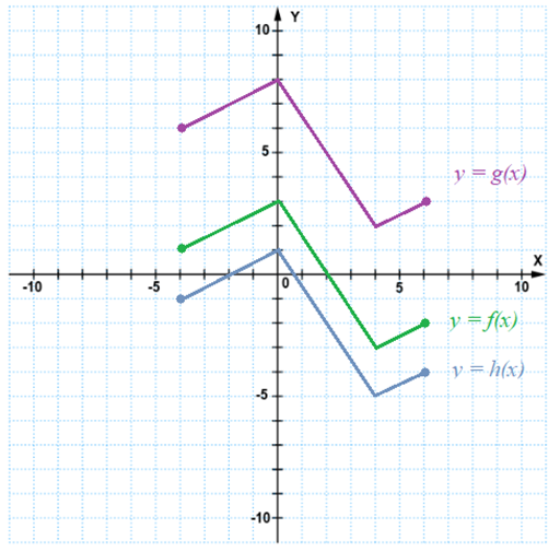 Aby narysować wykresy funkcji g i h, musisz znaleźć wektor przesunięcia na podstawie podanych wzorów funkcji. Obliczenia wykonaj na podstawie odczytanych z wykresów wartości funkcji.