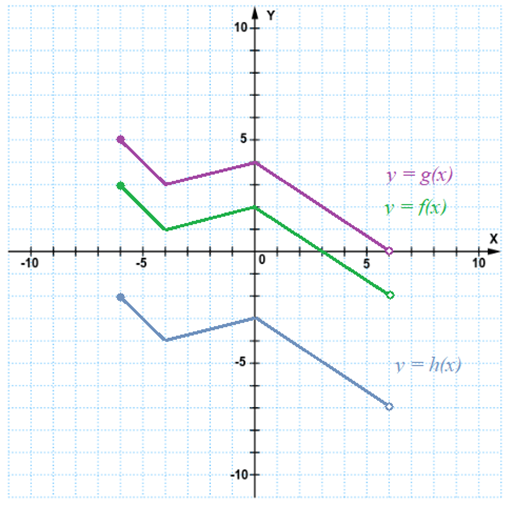 Następnie musisz odczytać współrzędne punktów, w których wykresy funkcji f, g oraz h przecinają oś OY oraz ich miejsca zerowe.