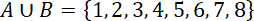 W pierwszym kroku musisz podać sumę zbiorów A i B, czyli wszystkie elementy występujące w zbiorze A lub B. Jeżeli taki sam element występuje zarówno w zbiorze A, jak i w zbiorze B zapisz go tylko raz. Zauważ, że cyfra 3 występuje w obu zbiorach, a w sumie zbiorów wymieniona jest tylko raz. Użyj znaku suma (