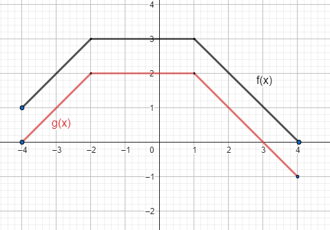 Trzeba przesunąć wykres funkcji f(x) o jedną jednostkę w dół, aby powstał wykres g(x).