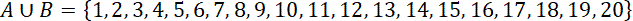 . Następnie musisz podać sumę zbiorów A i B, czyli wszystkie elementy występujące w zbiorze A lub B. Jeżeli taki sam element występuje zarówno w zbiorze A, jak i w zbiorze B zapisz go tylko raz. Użyj znaku suma (