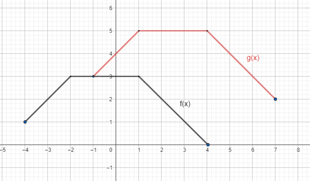Trzeba przesunąć wykres funkcji f(x) o trzy jednostki w prawo i dwie jednostki w górę, aby powstał wykres g(x).