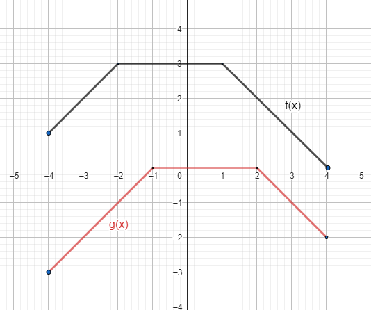 Należy odbić funkcję f(x) względem osi OY i przesunąć ją o 3 jednostki w dół.