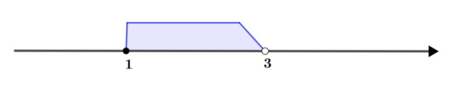 Jest to przedział lewostronnie zamknięty w 1 i prawostronnie otwarty w 3, więc na 1 musisz zamalować kółko, a na 3 nie.