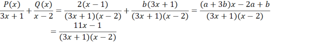Należy tak dobrać wielomiany P(x), Q(x), aby st.P(x) = 0 i st.Q(x) = 0 i zachodziła równość: