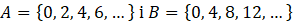 Zauważ, że zbiór A zawiera naturalne wielokrotności liczby 2, a zbiór B – wielokrotności liczby 4. W takim przypadku zbiór B zawiera się w A, więc