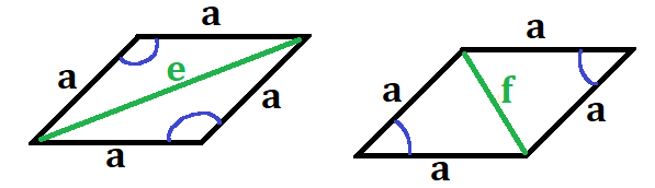 Rysujesz czworokąt, który ma boki równej długości. Takim czworokątem jest romb. Zaznaczasz długości boków. Każda z przekątnych podzieli romb na dwa trójkąty przystające, ponieważ mają taką samą długość boków.