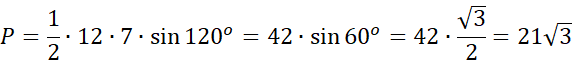 Skorzystaj ze wzoru na pole trójkąta z sinusem:
