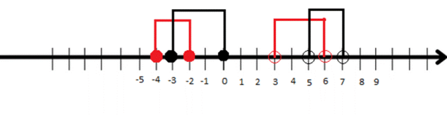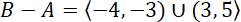 Najpierw zaznacz na osi na czarno przedział A i na czerwono przedział B. Następnie na podstawie rysunku podaj przedziały A – B i B – A oraz sumę i część wspólną przedziałów.
