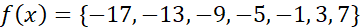 | f(x) | -17 | -13 | -9 | -5 | -1 | 3 | 7 |