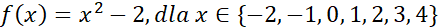 | x | -2 | -1 | 0 | 1 | 2 | 3 | 4 |