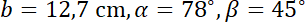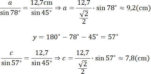 W tym zadaniu użyj twierdzenia sinusów i wstaw dane korzystając z tablic trygonometrycznych.