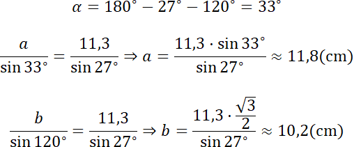 W tym zadaniu użyj twierdzenia sinusów i wstaw dane korzystając z tablic trygonometrycznych.