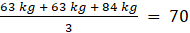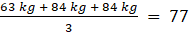 Rozważ dwie sytuacje: kiedy trzecia deska waży również 63 kg oraz kiedy trzecia deska waży również 84 kg. W pierwszej sytuacji średnia wynosi: