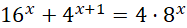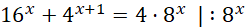 Aby poprowadzić ten dowód musisz obliczyć wartość x dla podanego równania. Zauważ, że wszystkie te liczby są potęgami liczby 2. Przekształcaj równanie, aż będą w nim występować same liczby oraz niewiadoma