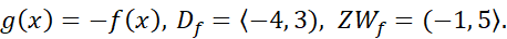 Po przekształceniu wykresu funkcji f przez symetrię osiową względem osi OX dziedzina otrzymanego wykresu funkcji g jest taka sama jak funkcji f, a zbiór wartości funkcji g ma przedział o przeciwnych znakach na końcach przedziału niż funkcja f.
