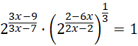 Na początku wyznacz dziedzinę, pamiętaj, że liczba w mianowniku nie może być równa 0. Następnie zamień wszystkie potęgi na potęgę liczby 2. Pamiętaj, że mnożąc potęgi o takich samych podstawach musisz dodać wykładniki. Potem zamień 1 na potęgę liczby 2 i opuść potęgi. Rozwiąż równanie z niewiadomą x.