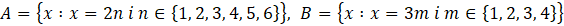 Najpierw wyznacz zbiory A i B, wymnażając odpowiednio przez 2 i przez 3 wartości n i m, a następnie wskazane zbiory.