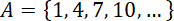 Wypisz elementy zbioru A, czyli liczby naturalne podzielne przez 3 z resztą 1.