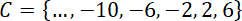 Wypisz elementy zbioru C, czyli liczby całkowite podzielne przez 4 z resztą 2.