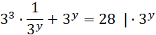 Rozwiąż równanie. Zamień liczbę po prawej w drugim równaniu na potęgę liczby 3: