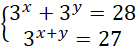 Na początku zamień liczbę po prawej w drugim równaniu na potęgę liczby 3. Następnie uzależnij x od y rozwiązując drugie równanie układu. Dzięki temu możesz podstawić za x, w pierwszym równaniu, wyznaczoną wartość. Powstałe w ten sposób równanie będzie równaniem kwadratowym, dlatego musisz podstawić zmienną t za