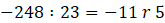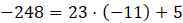 Przedstaw iloraz -248 : 23 jako dzielenie z resztą, a następnie podaj dzielną jako sumę iloczynu i reszty.