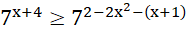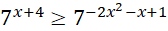 oraz zauważ, że postawa funkcji wykładniczej jest większa od 1, by wyznaczyć odpowiedni przedział. Rozwiąż nierówność kwadratową.