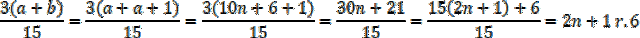 Po wyznaczeniu postaci liczb a i b, podziel liczbę 3(a + b) przez 15 i wyznacz resztę z tego dzielenia.