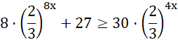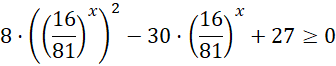 Podstaw za funkcję wykładniczą zmienną 𝑡 pamiętając, że musi być ona większa od zera. Rozwiąż wynikową nierówność kwadratową, a następnie przekształć zbiór rozwiązań w 𝑡 na zbiór rozwiązań w 𝑥. Zrób to, biorąc logarytm z wartości krańcowych przedziału (logarytm jest monotonicznie rosnącą funkcją nieokresową na danym przedziale, więc można tak zrobić).