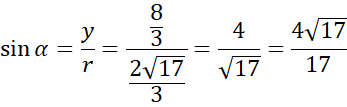 Wyznacz wartości funkcji trygonometrycznych sinus, cosinus i tangens kąta, którego ramię wodzące przechodzi przez punkt .