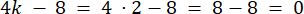 W tym zadaniu należy obliczyć wartość wyrażenia 4k - 8 dla zmiennej k = 2