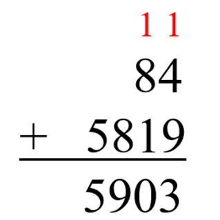 Oblicz wyrażenie, wykonując działanie pisemne. 84 + 5819