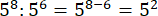 Dzieląc potęgi o tych samych podstawach, musisz odjąć od siebie wykładniki, podstawy zostają bez zmian.