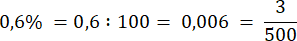 Przekształć daną wartość procentową na jej równoważną wartość jako ułamek dziesiętny oraz na nieskracalny ułamek zwykły: 0,6%